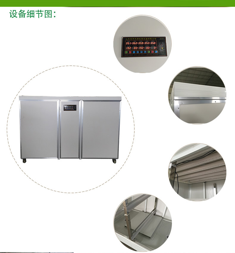 產(chǎn)品型號:YJ-800A (該機器有 一機單控和一機雙控 兩個型號) 電源電壓(V):220 總功率(KW):2.0 總?cè)萘?KG):1600 日產(chǎn)量(KG):400 育芽箱:48個(里外雙排,如下圖) 整機重量(KG):500